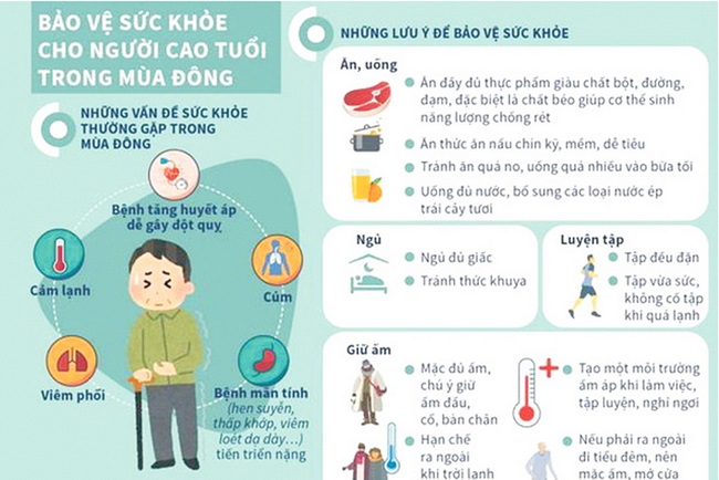 Thời tiết đang chuyển mùa, biện pháp phòng ngừa tốt nhất cho NCT là không nên đến những nơi đông người; cần ăn uống đủ dinh dưỡng, cải thiện môi trường sống, tránh khói bụi, ẩm mốc. Không hút thuốc lá. Hạn chế sử dụng máy lạnh hay máy quạt. Thường xuyên uống nhiều nước giúp tuần hoàn cơ thể tốt, đào thải chất độc ra khỏi cơ thể thuận lợi. Những người mắc bệnh mạn tính cần tuân thủ điều trị theo đúng chỉ định của bác sĩ. NCT cần chủ động tiêm vắc xin cúm mùa, vắc xin phế cầu.