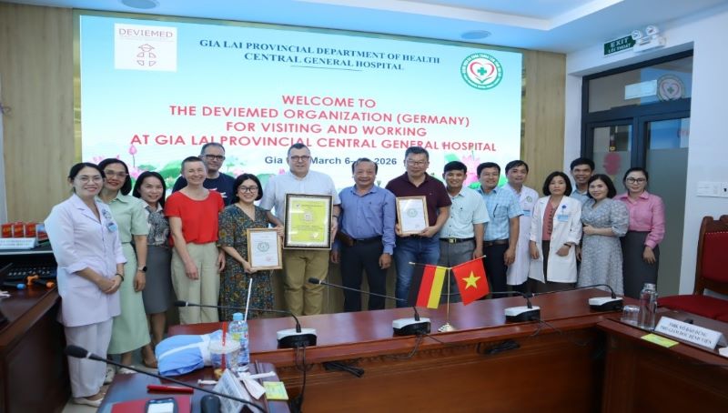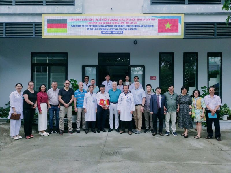 Trong khuôn khổ chương trình hợp tác quốc tế về đào tạo và trao đổi chuyên môn. Đoàn chuyên gia của tổ chức Deviemed (Cộng hòa Liên bang Đức) do GS.TS.TS.BS. Martin Scheer - Chủ tịch Deviemed làm trưởng đoàn đã đến thăm và làm việc tại Bệnh viện Đa khoa Trung tâm tỉnh Gia Lai nhằm: hỗ trợ đào tạo, trao đổi chuyên môn trên lĩnh vực Gây mê, phẫu thuật Hàm Mặt, Tai Mũi Họng, chỉnh âm cho Kỹ thuật viên về ngành chỉnh âm.
