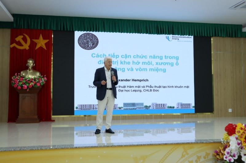 Bên cạnh hoạt động khám và hỗ trợ phẫu thuật, vào chiều ngày 13/3/2026, Bệnh viện Đa khoa Trung tâm tỉnh Gia Lai đã phối hợp với đoàn chuyên gia của Deviemed tổ chức Hội thảo khoa học với chủ đề: “Điều trị liên chuyên khoa và chăm sóc toàn diện cho trẻ bị dị tật khe hở môi – hàm – vòm miệng”. Hội thảo có sự tham dự của các giáo viên trường Chuyên biệt Hy vọng Quy Nhơn và bác sĩ thuộc nhiều chuyên ngành như Gây mê hồi sức, Răng Hàm Mặt, Tai Mũi Họng, Nhi khoa và các chuyên ngành liên quan. Tại hội thảo, các chuyên gia quốc tế đã trình bày 02 báo cáo chuyên môn, chia sẻ kinh nghiệm điều trị và cập nhật các kỹ thuật tiên tiến trong chẩn đoán, phẫu thuật, chỉnh âm và chăm sóc toàn diện cho trẻ mắc dị tật khe hở môi – hàm – vòm miệng.